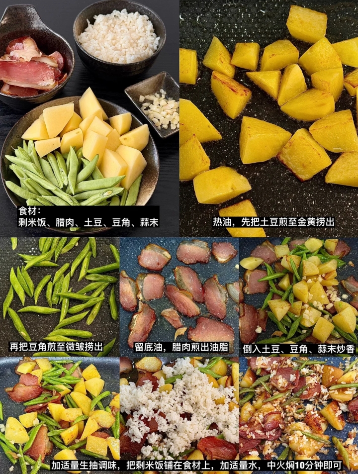 1・腊肉土豆豆角焖饭:咸香浓郁,经典不踩雷