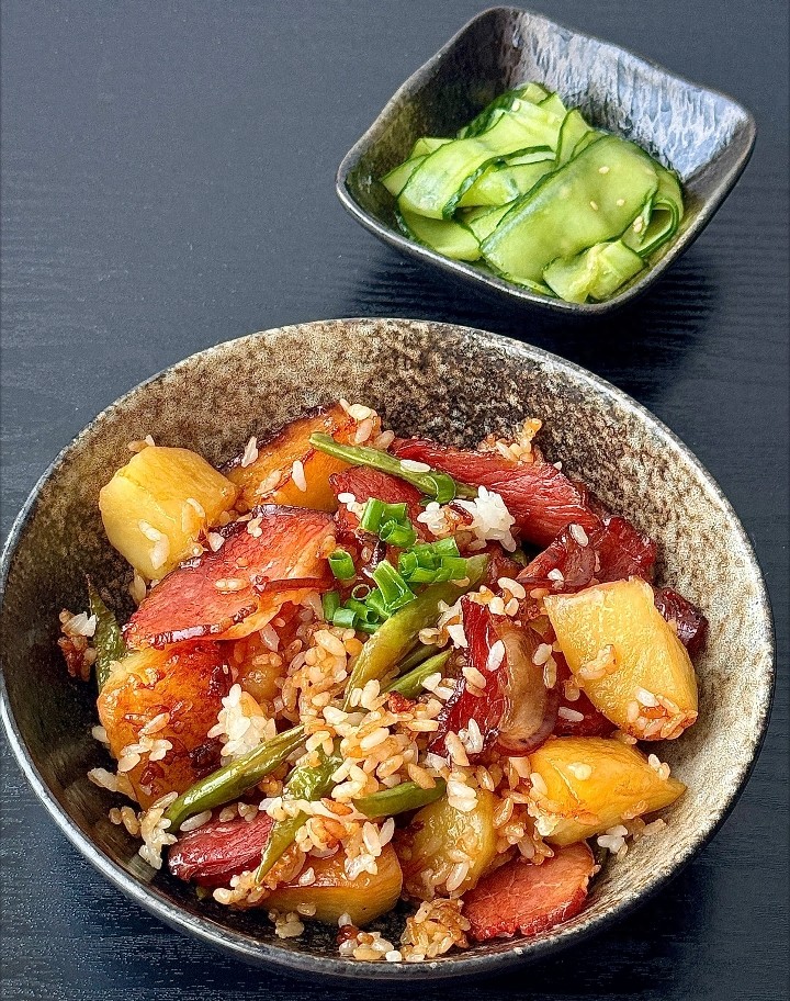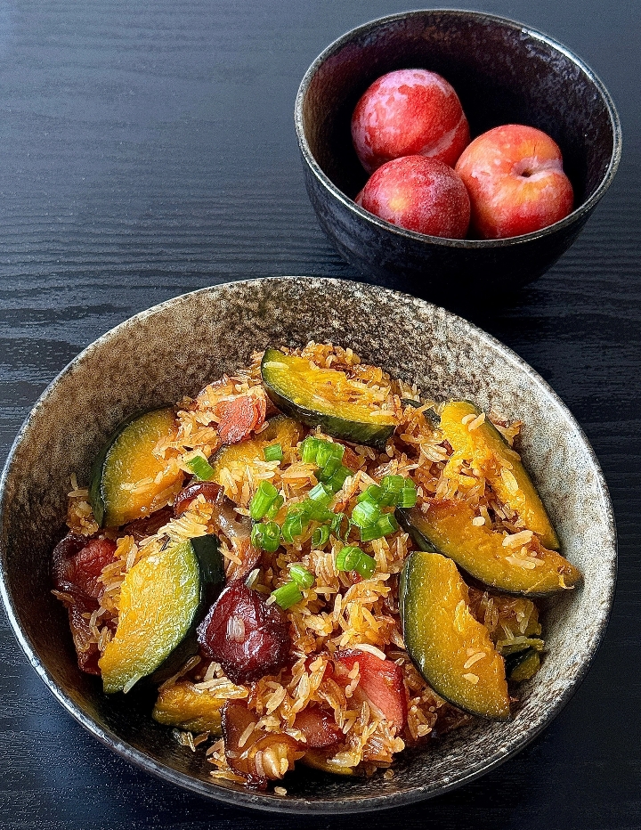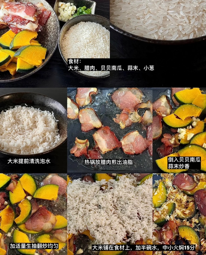 3・南瓜腊肉焖饭:软糯香甜,老少皆宜