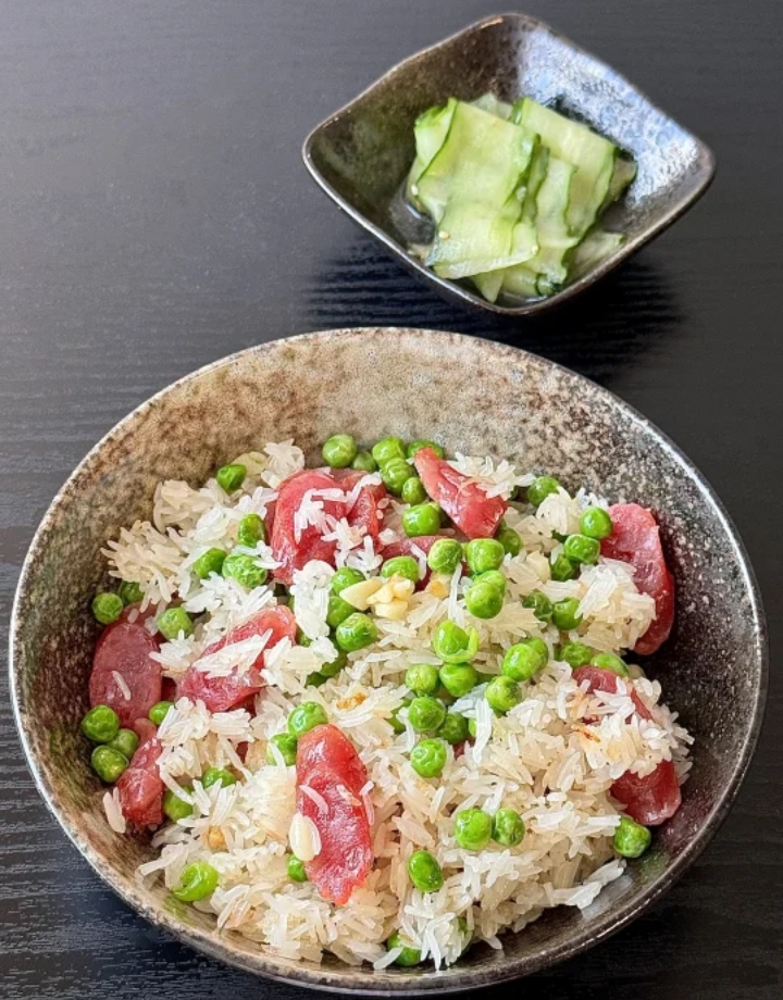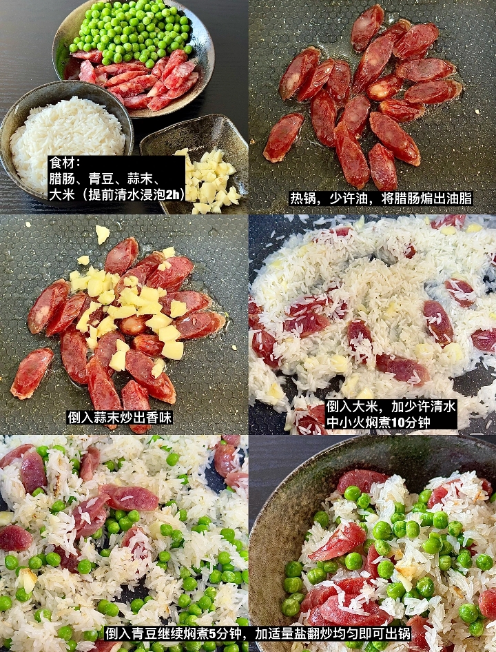 4・青豆腊肠焖饭:清爽鲜香,口感丰富