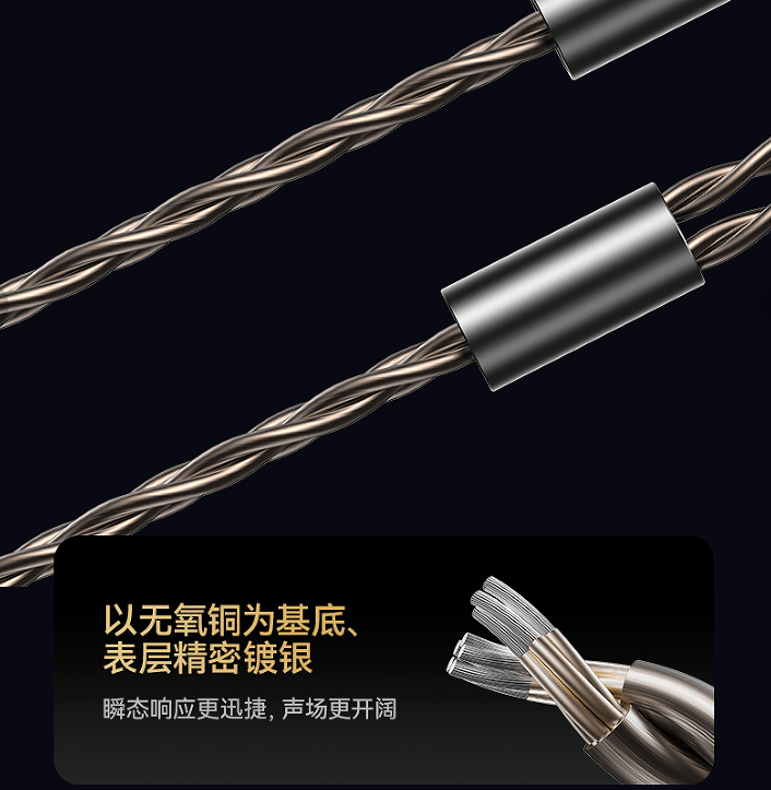 此外,西圣HiFi耳机在细节处也体现匠心:182芯高密度同轴线材以无氧铜为基底、表面精密镀银,既保证了低频的厚实有力,也让高频延伸更加通透细腻;多芯并行的结构设计有效降低了阻抗和信号失真,实现了信号的极速响应与音场的沉浸还原,可谓HiFi有线耳机的“白银动脉”。