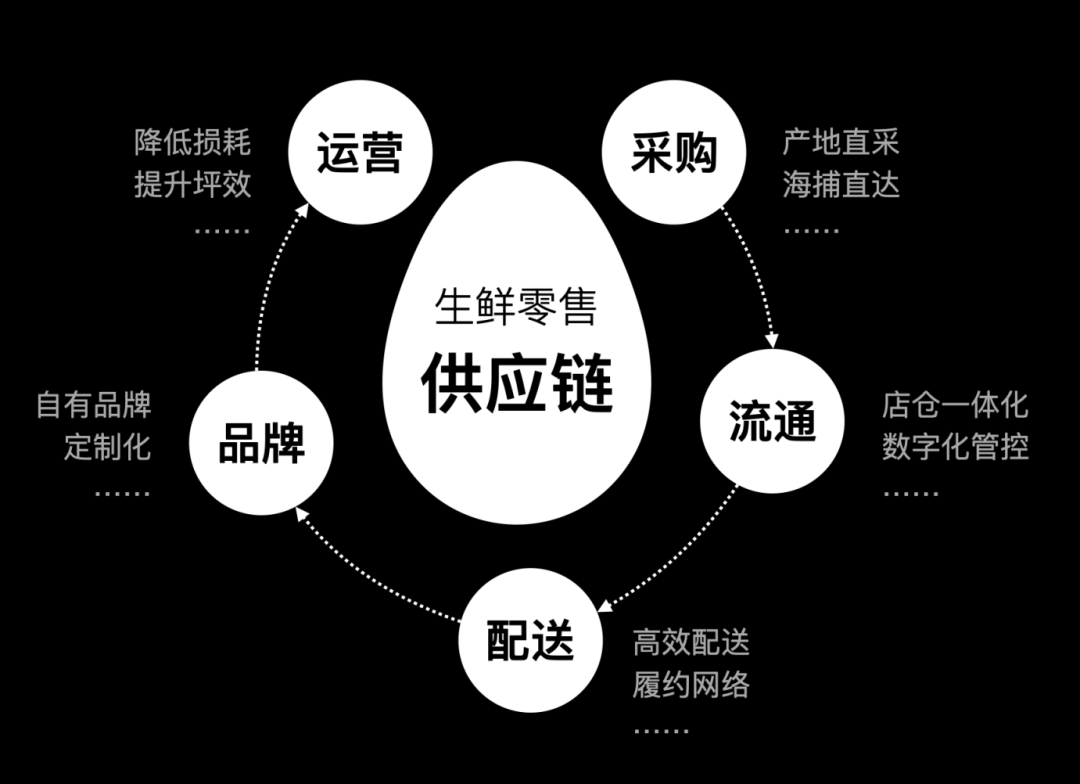 “1+N”之所谓能成为生鲜零售的“标准答案”,很大程度在于对供应链的把控——在成本、效率、和体验上,完成了对固有模式的升级换代,在零售三要素“人、货、场”层面,也都有所创新。