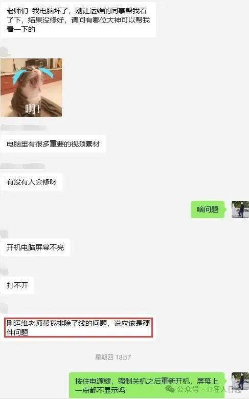 三、案例:当专业碰撞尴尬某日,某部门电脑突发故障: