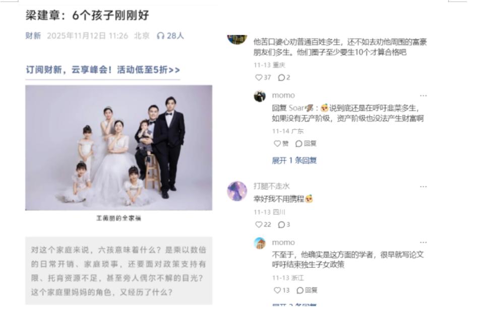 11月份梁建章的6个孩子刚刚好的言论,再次引起了部分网友的热议。