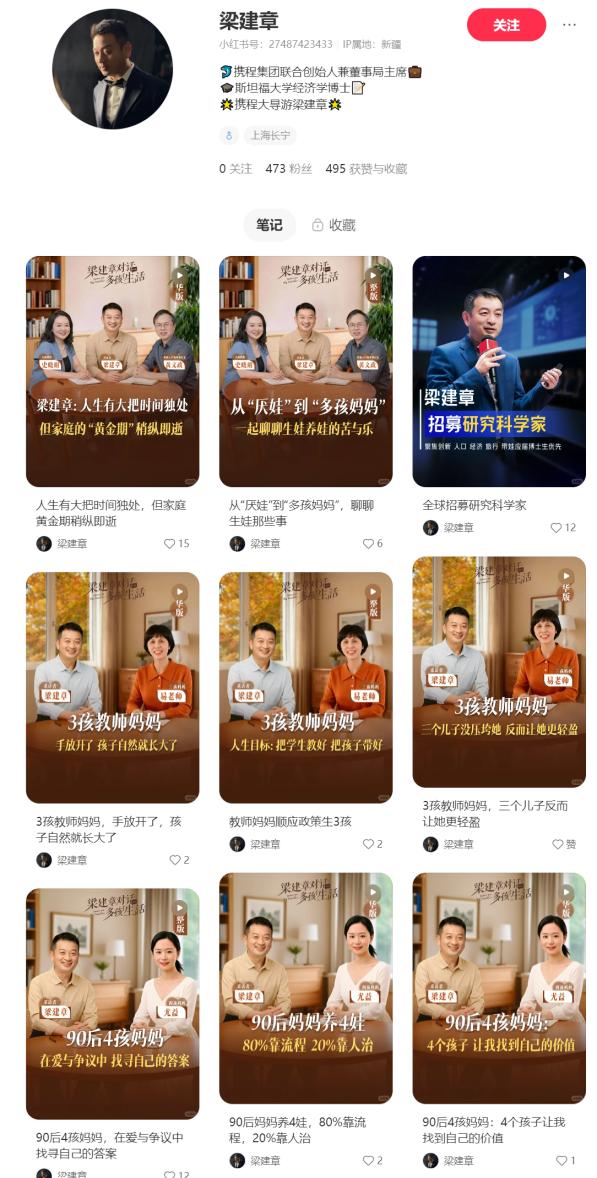 如今打开梁建章的社交媒体,发现大部分内容还是与人口相关,这种做法并无不妥之处。