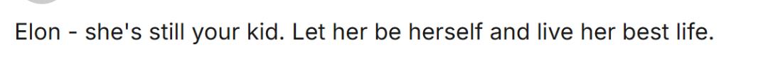 “马斯克应该接受她还是自己孩子的事实,让她大胆做自己,去享受自己的人生吧...”