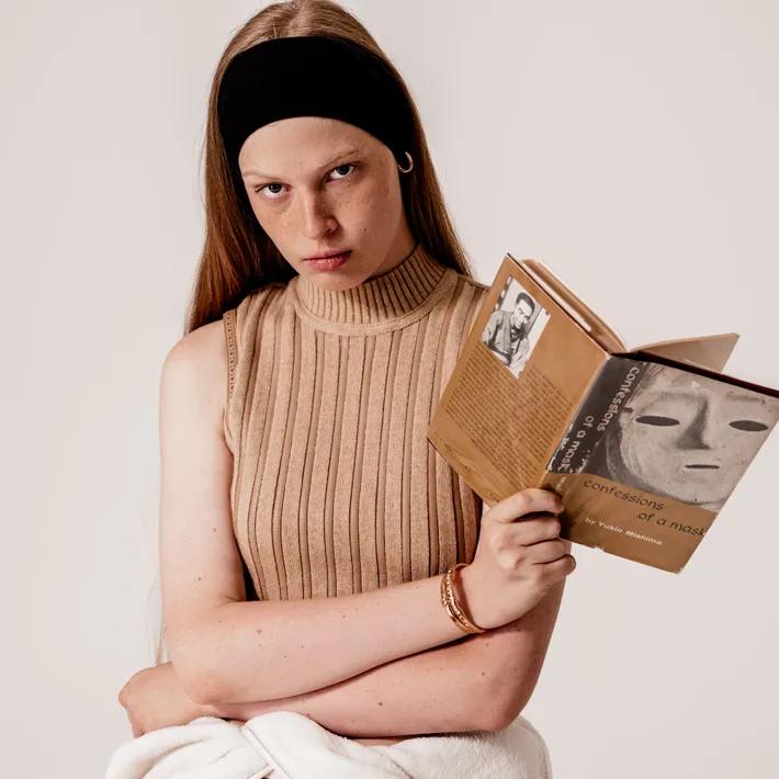 第一场走秀中,她身穿一套白色针织套装,oversize的毛衣、超长鱼尾裙和透明高跟鞋搭配,高冷的模特神情的确有点久经秀场老将的意思,首次露面就引发了很大关注。