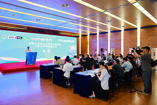 上海市体育局副局长罗文桦,上海市崇明区副区长施蕾,中国自行车运动协会特邀副主席钟天使等领导出席本次新闻发布会。一同到场的还有世界杯年度总积分冠军、亚锦赛冠军、全运会冠军黄丽,亚运会冠军、全运会冠军周瑜。本次会议就赛事整体情况、筹备工作、配套活动以及崇明世界级生态岛建设情况和体育产业发展情况向媒体进行了介绍。