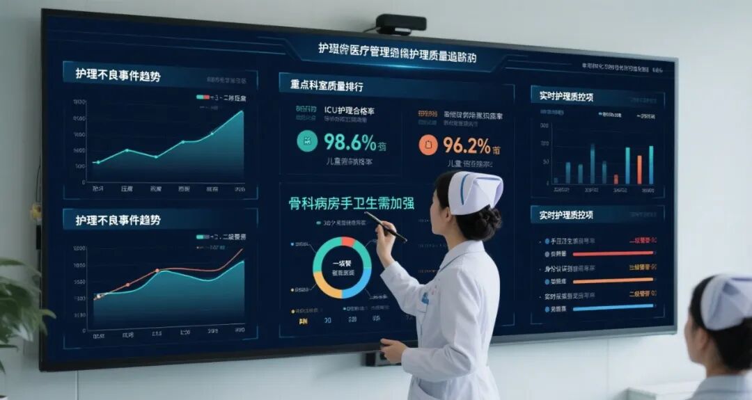 医疗质量监控大屏:多屏拼接显示,实时展示医疗质量指标和异常预警。