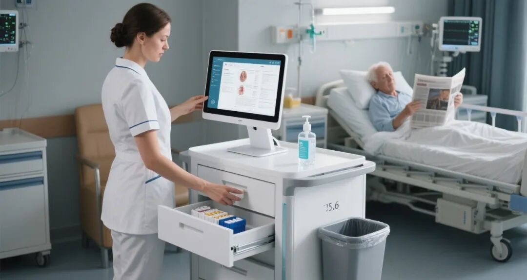 移动护理车:集成电脑终端和药品存储功能,实现移动式护理服务,支持病床旁检查检验和记录。