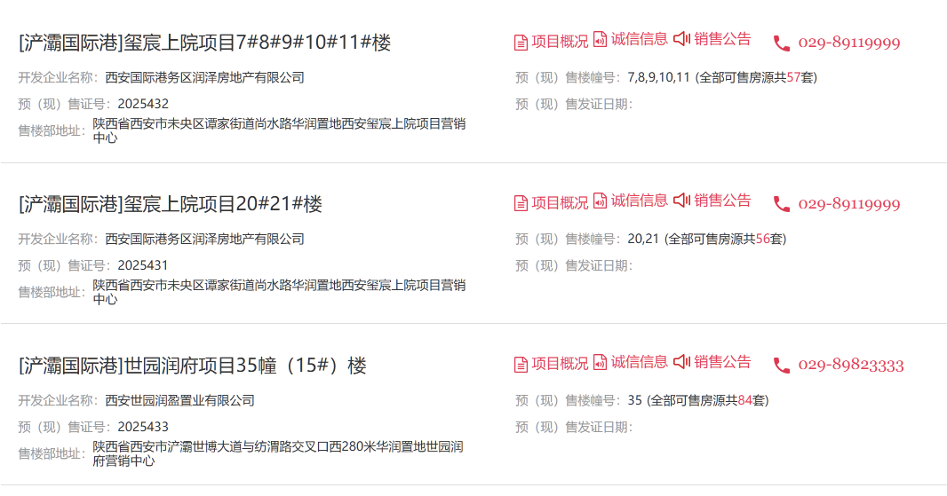 同日,浐灞国际港另一热盘世园润府加推35#号楼,总高21层,共84套房源,户型区间为建面约122.69-175.83㎡,均价18092.56元/㎡,目前已获销许。