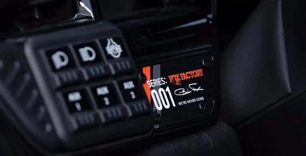外观部分,Fox Factory在前部安装了强大的新LED灯,加宽了车轮罩,配有碳纤维引擎盖、高护板前后保险杠,并在车厢中安装备用轮胎支架。