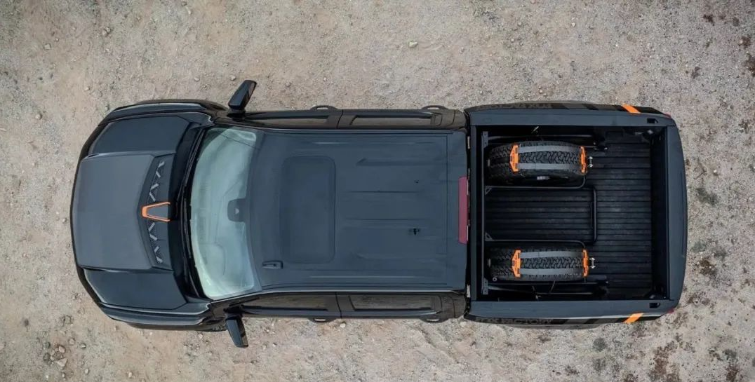 后悬架也被移除,并替换为带有新的螺旋弹簧、减震模块和铝合金拖曳臂的多连杆长行程悬挂,这款皮卡现在可提供370mm的前行程和395mm的后行程。