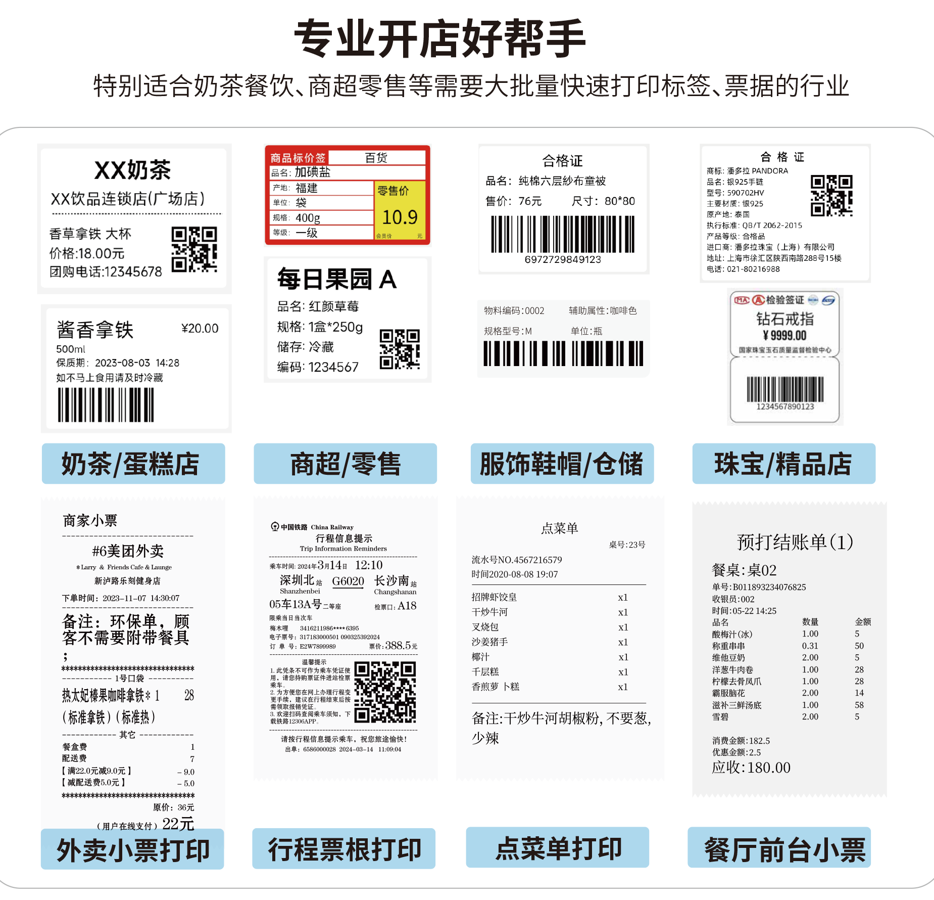 支持标签、票据双模式打印,无需额外购置设备,既节省成本,又为桌面腾出更多空间,商家经营更省心。