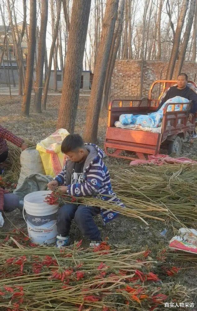 (儿子带着我摘辣椒打零工赚钱)