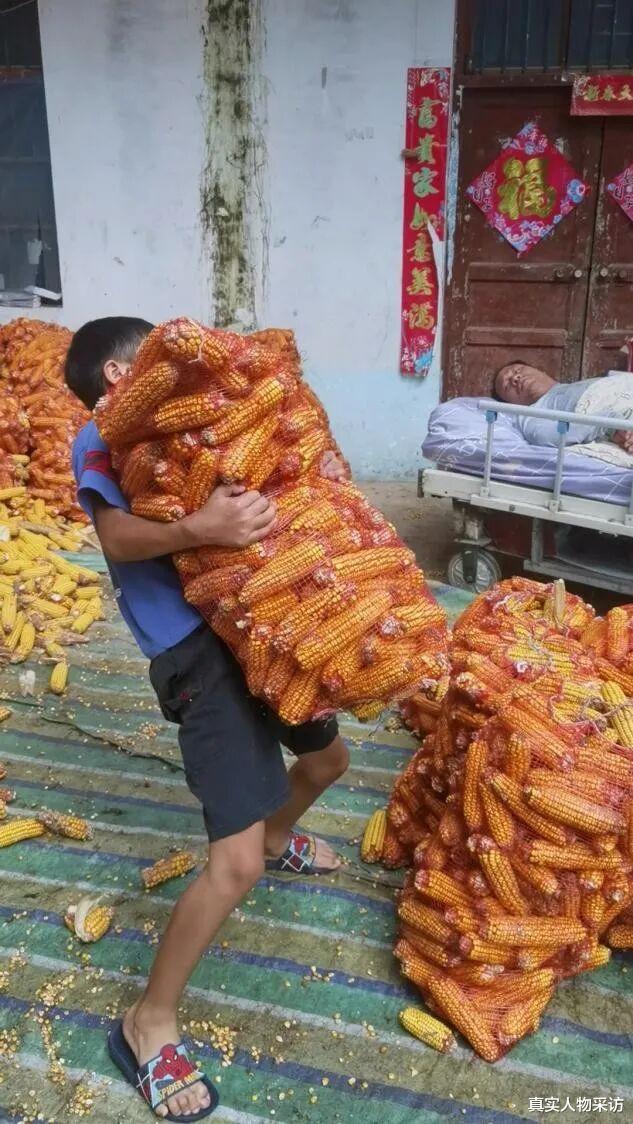 但是孩子哭过之后继续坚持干活。当我看到孩子脸和胳膊被玉米叶子划成那个样子,心里比刀割还痛。