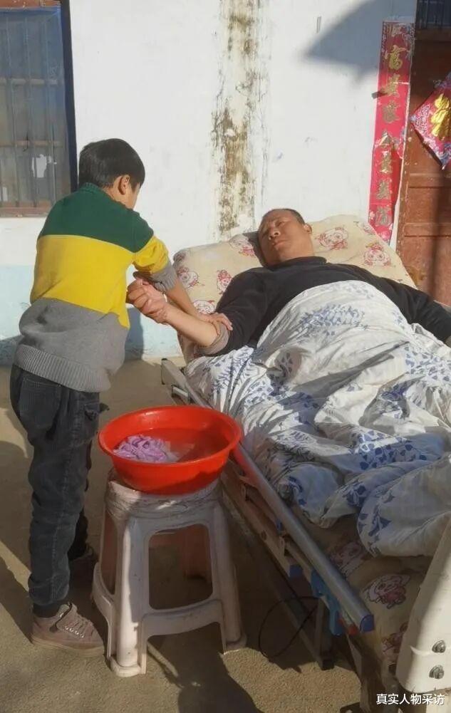 别人家的孩子这个年龄正在爸爸妈妈怀里撒娇,而我的儿子却承担起照顾爸爸的任务。