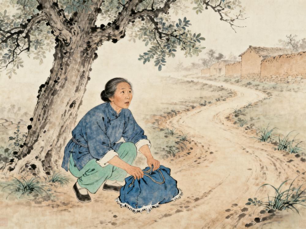 这天王婶去镇上赶集,想给小柱扯块蓝布做件新褂子 —— 小柱都快十岁了,身上的褂子还是前年的,袖口都短了一大截。走到半路,路过那棵老槐树时,脚底下突然踢到个软乎乎的东西。她低头一看,是个蓝布包,针脚缝得密实,边角还磨得起了毛,一看就是用了好些年的旧包。