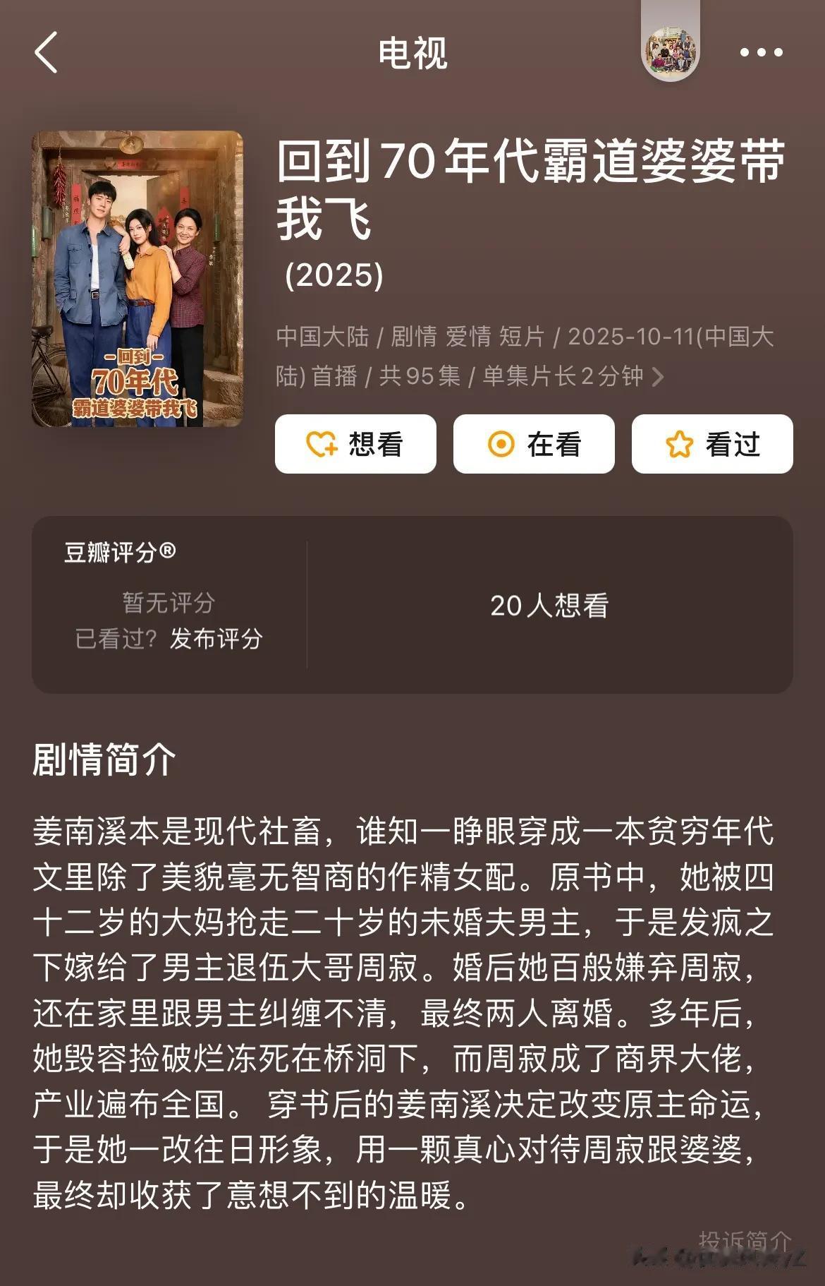 而穿书后的姜南溪决心改写命运,主动善待丈夫和婆婆;巧合的是,婆婆竟是重生归来,深知姜南溪才是自己被调包的亲生女儿,周寂反而并非亲生,于是化身“护女狂魔”,婆媳二人结成同盟。
