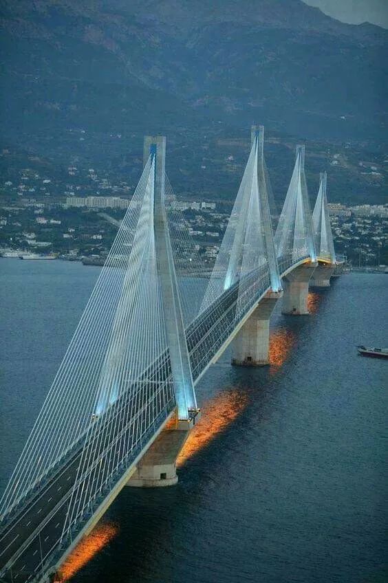 8.希腊的安蒂里永大桥(Rio-Antirrio),高大的斜拉钢索给足人压迫感。