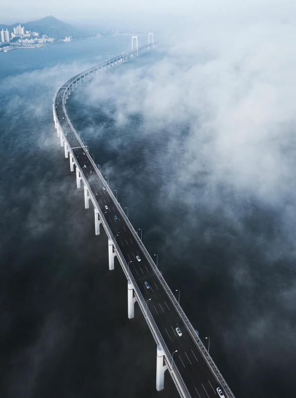 16.象山港大桥,大雾下,它宛如一头远古巨兽静静匍匐在海上...