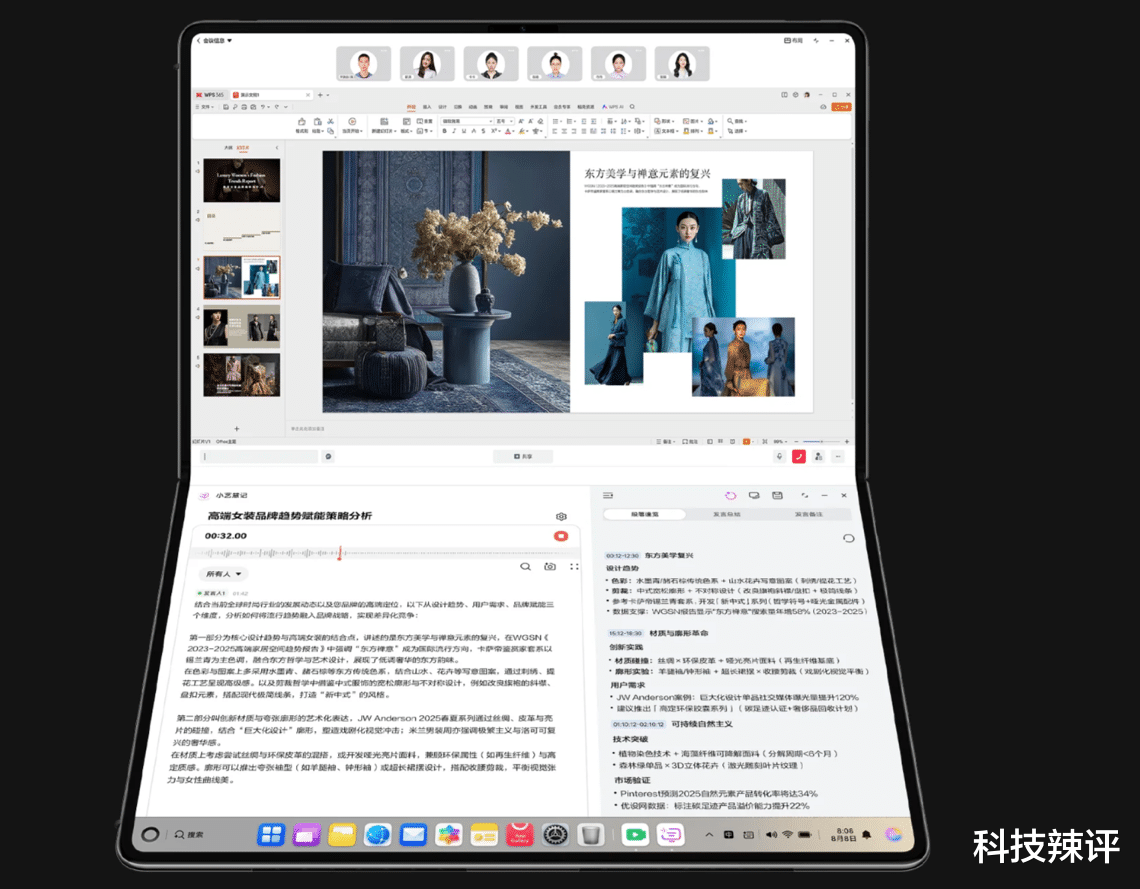 而在华为 MateBook Fold 非凡大师上,AI能力与大屏形态的结合进一步释放生产力:用户可以在上下屏分别运行会议记录与资料展示,让小艺同步完成纪要生成与文档对照,真正做到“一机多能”。这种智能体验,极大提高了复杂场景下的工作效率。
