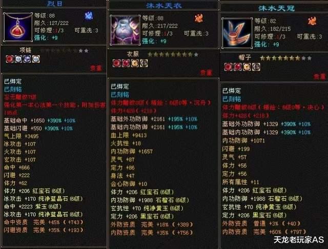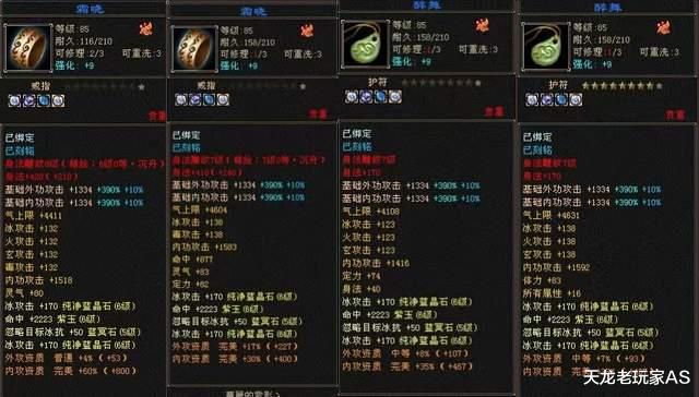装备不是天花板,但是很实用——比如这个大七星三属性项链,气上限、冰火玄三属性(契合本身的三修属性)。