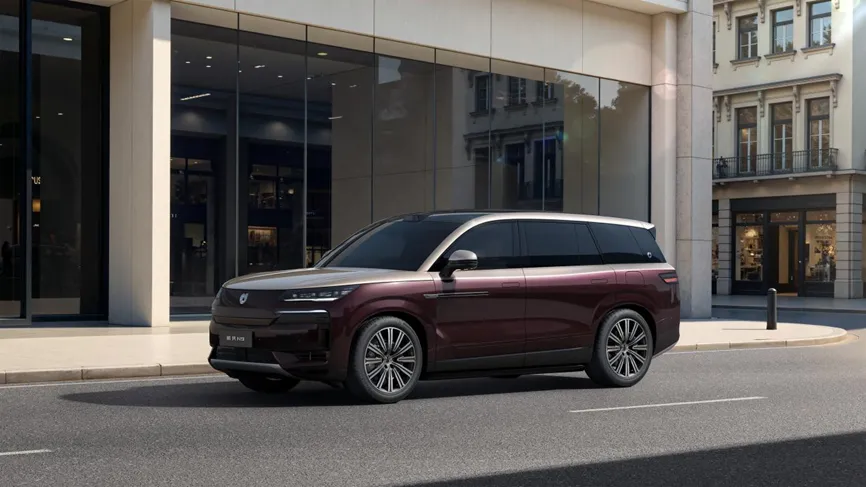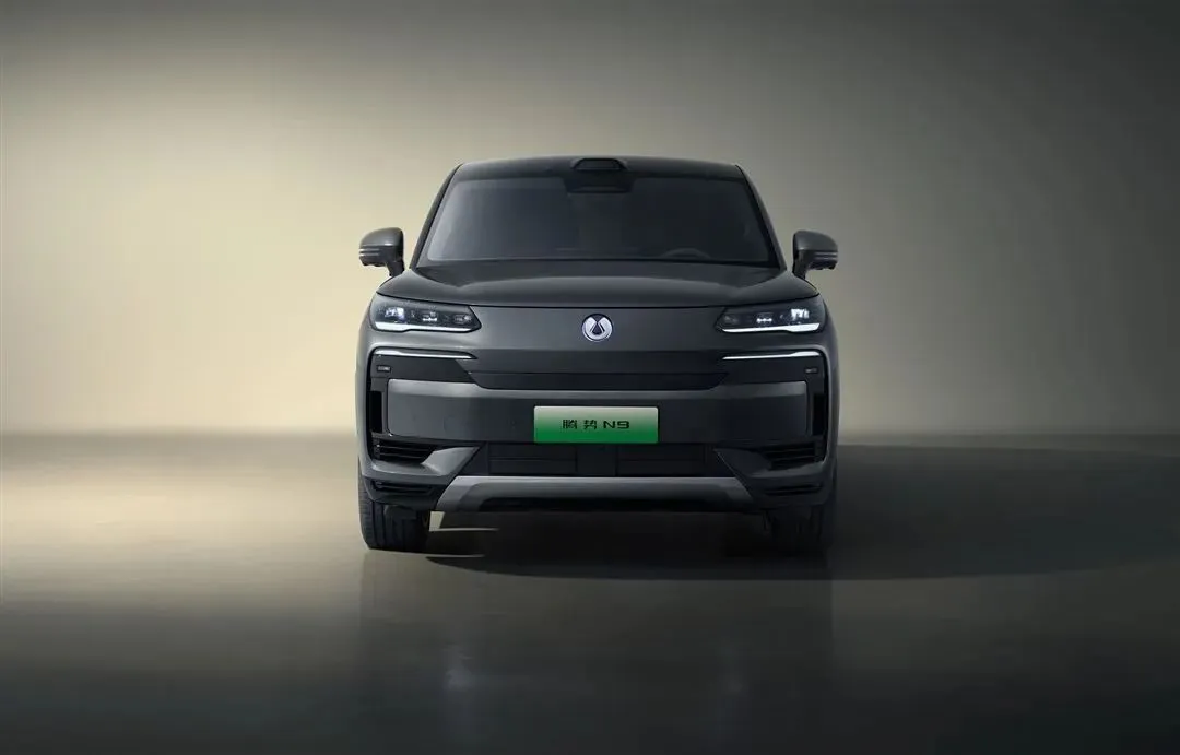 腾势 N9 延续了家族式的设计语言,采用 “顶天立地” 的设计理念,整体造型方正,线条硬朗,给人一种美系肌肉车般的强大气场。前脸部分,分体式的大灯组设计独特,细长的大灯造型搭配上下双主动进气格栅(AGS),不仅营造出庄重且科技的视觉感受,还能优化空气动力学性能,提升车辆的行驶稳定性。车尾部分,细长的尾灯组与前大灯组相互呼应,内部灯组呈现间断样式,点亮后精致感十足。后包围采用黑色涂装并带有车身同色饰板,进一步增加了尾部的立体感。