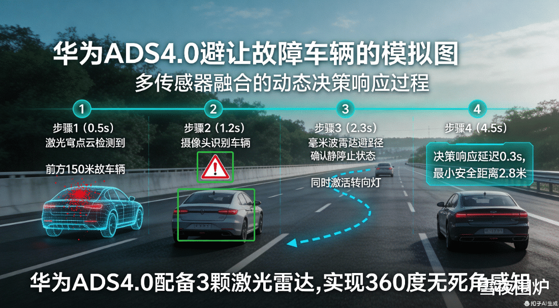 场景预判能力:华为乾昆智驾ADS4.0采用WEWA技术(世界模型增强算法),通过模拟千万级真实中国路况(如高速故障车辆、施工路段、急弯),提前0.5秒决策避障。例如,在时速120公里的高速测试中,系统曾成功避让前方30米突然出现的故障车辆,全程无需人工接管。