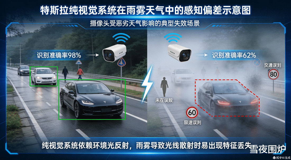特斯拉的自动驾驶技术以纯视觉路线(摄像头+算法)为核心,依赖海量数据训练视觉模型(搜索结果20)。但中国道路的特殊性(如行人、非机动车随意穿行、道路标线模糊、施工场景频繁)对视觉感知的精度与鲁棒性提出了更高要求。纯视觉路线在**低能见度(雨雾、夜间)、静态障碍物(施工锥、故障车辆)、复杂语义(非机动车型类繁多)**等场景下,容易出现感知偏差(搜索结果19提到特斯拉FSD在中国误闯红灯、错误变道的问题)。