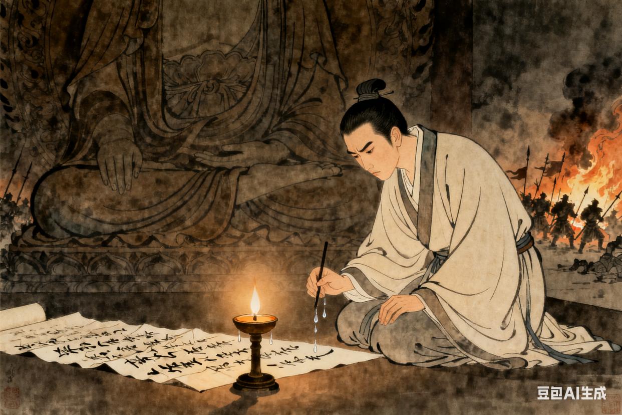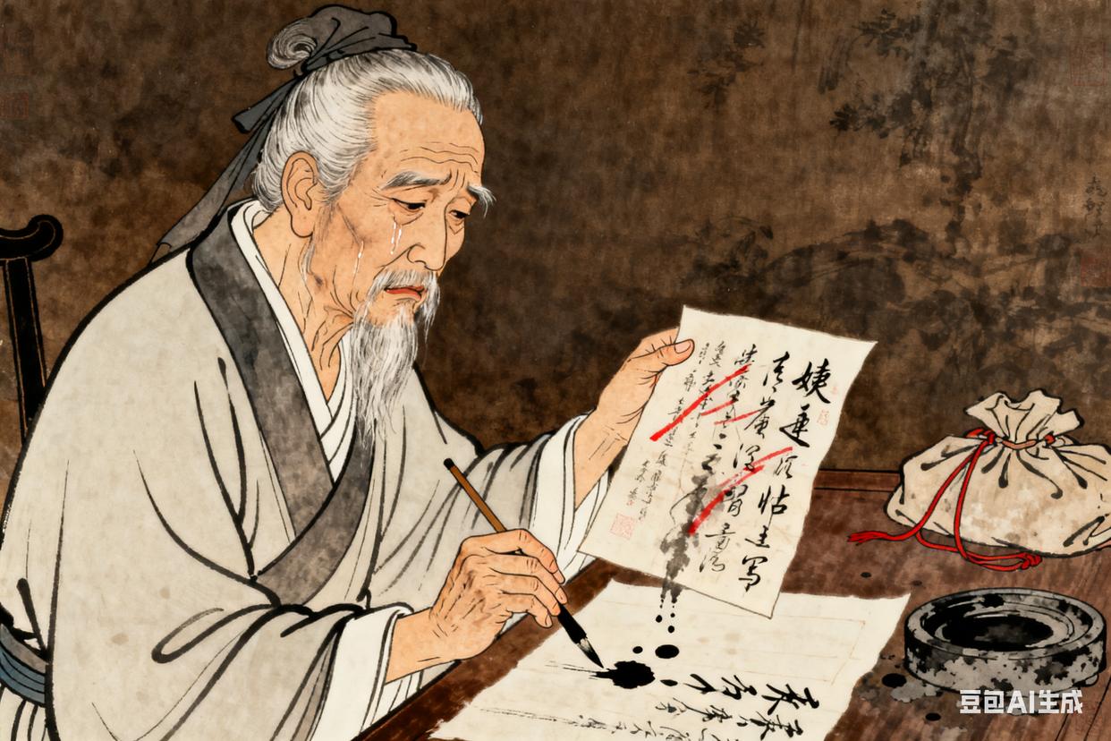 兴宁二年,他的妻子郗璿去世。郗璿也是个懂书法的人,以前常陪他在灯下练字,他写累了,她就递一杯热茶,帮他把墨磨好。妻子走后,他很久没动笔,案头的砚台蒙了一层灰。有一天,他整理妻子的遗物,发现一个布包,里面裹着他早年写的《姨母帖》草稿,上面还有妻子用红笔改的痕迹。他拿起笔,蘸了墨,在草稿的背面写了起来,写的是对妻子的思念,字里带着颤抖,墨汁好几次都滴在了纸上。那篇字后来被称为《丧乱帖》,每一笔都藏着撕心裂肺的痛,后人看了,都忍不住落泪。