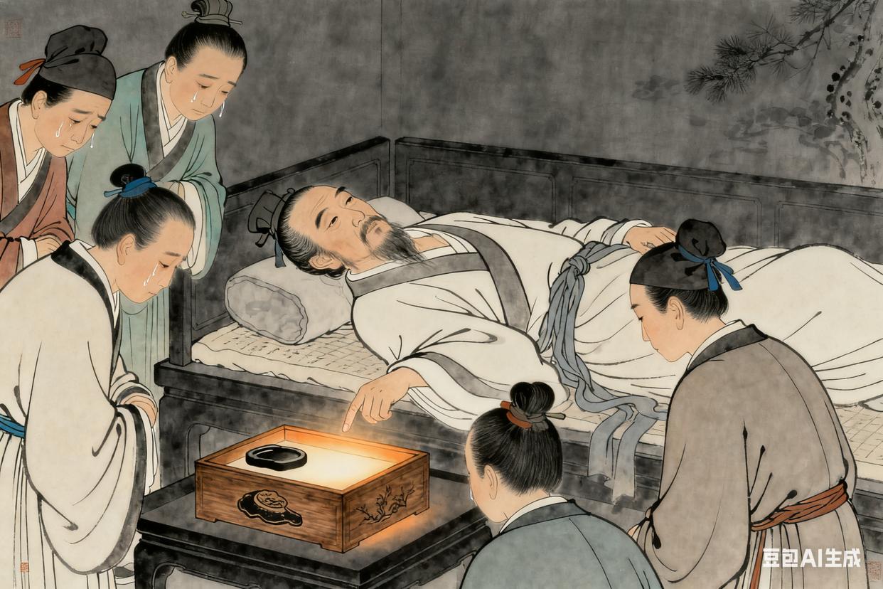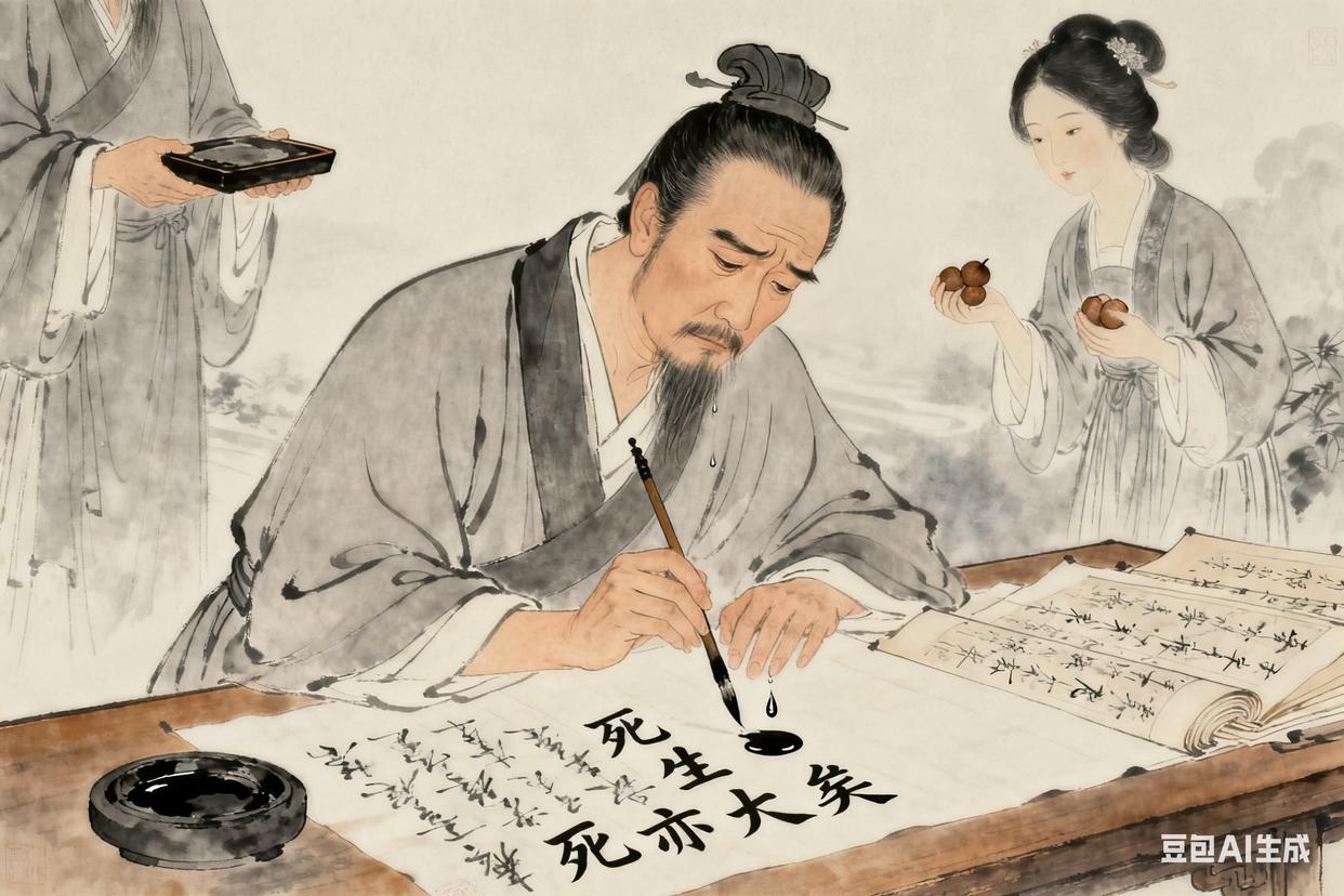 太元四年,王羲之病重。他把子孙叫到床前,指着案头的一个木盒说:“这里面是《兰亭集序》的真迹,我走后,你们把它给我陪葬,别让它落在俗人手里。”子孙们哭着答应了。临终前,他还想再握一次笔,可手指已经动不了了,只能看着案头的砚台,眼里满是不舍。他一辈子与笔墨为伴,把心事、风骨、温柔都藏在了字里,最后也想带着这份执念,去往另一个世界。