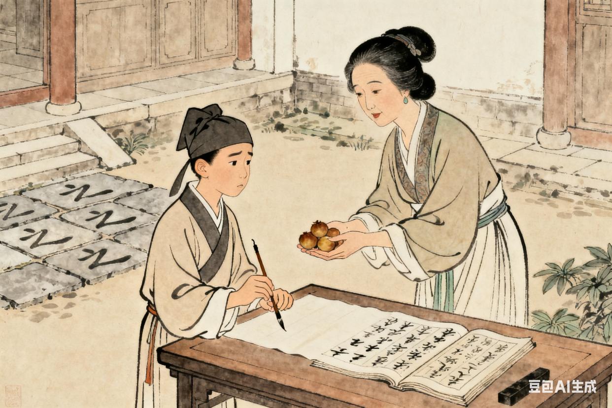 十岁那年,叔父王导把他送到卫夫人门下学书。卫夫人是当时最有名的女书法家,见他握笔时指节绷得发白,便从案头拿起一颗煮熟的栗子:“写字要像握栗子,太松会掉,太紧会碎。”他试着放松手指,笔尖在纸上划过的瞬间,忽然觉得心里的慌乱好像被墨线牵住了。卫夫人常指着他的字说:“你写的‘之’字,像刚从溪里捞上来的小鱼,有活气,但少点筋骨。”他就每天天不亮就起来练字,院子里的青石板被磨出了浅浅的凹痕,指尖的薄茧一层层褪了又长。