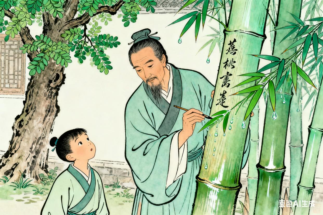 搬到金庭后,他每天早上都要去后山的竹林里练字。他把竹子当纸,用手指蘸着露水在竹皮上写,露水干了再写,直到竹皮被磨得发亮。有一次,他的小儿子王献之问他:“爹,你写了这么多年字,什么时候才能像你写《兰亭集序》那样好?”他摸了摸儿子的头,指着院子里的老槐树说:“你看这树,春天发芽,夏天开花,秋天落叶,冬天结果,从来没急过。写字也一样,要等心里的话攒够了,笔自然就听话了。”后来王献之成了著名的书法家,人们说“二王”,可他总说,自己不如父亲,因为父亲的字里,藏着对生活的温柔。