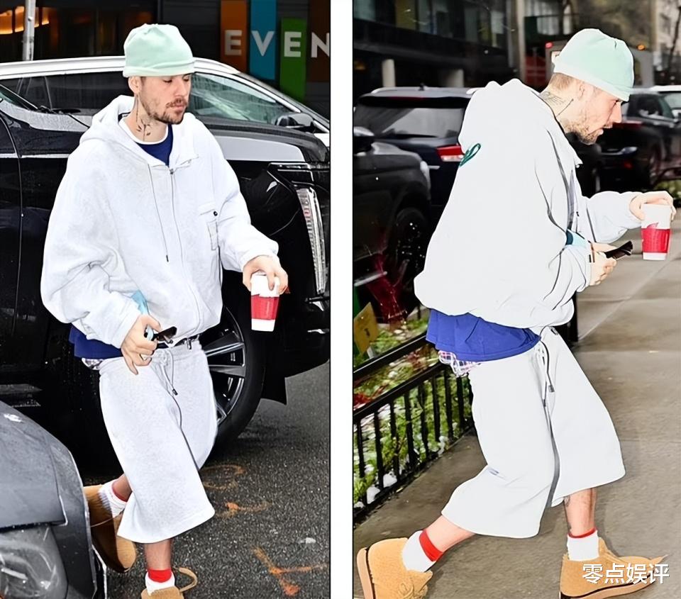就在光顾浴室的次日,也就是当地时间 2 月 6 日,比伯再次闯入公众的视野。只见他手捧咖啡,步伐略显拖沓地走进一座办公楼。此刻呈现在众人眼前的他,面容憔悴不堪,身形如弓般佝偻,那条松垮得仿佛随时都会滑落的大短裤,更是让他整个人散发着一种难以言说的颓废气息,以至于部分媒体毫不留情地用 “形如行尸走肉” 来形容他当下的状态。