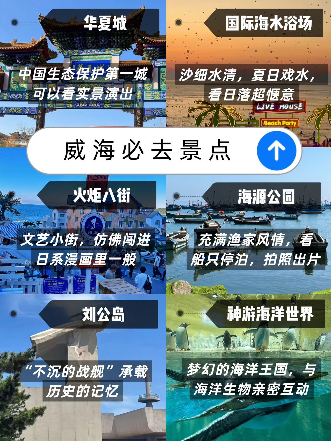 🟡神游海洋世界是威海唯一的海洋馆,有美人鱼演出🟡去刘公岛前,一定提前查好船票时段,不然排队能排到怀疑人生🌅/🌆威海景点游玩适宜时间(P6)