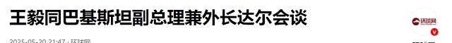 环球网:2025-05-20:王毅同巴基斯坦副总理兼外长达尔会谈