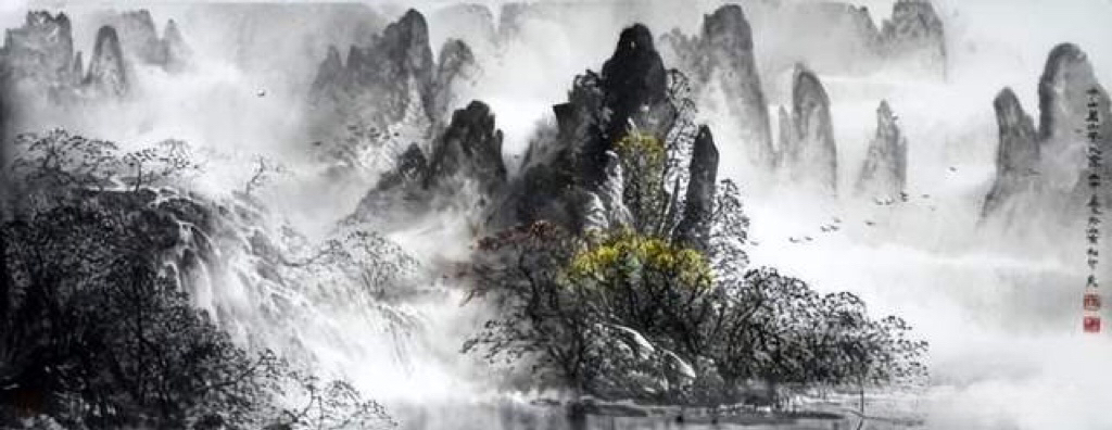 在杜中良的山水画作里,色彩与情感是缺一不可的灵魂元素。二者相互交融、彼此成就,让作品的意境愈发深邃悠远,引人无限遐想。