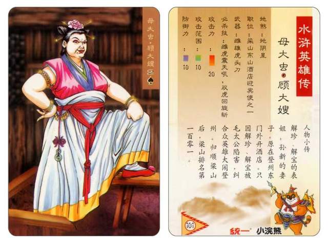 顾大嫂,孙新的妻子,因为性情火爆彪悍,还懂得一些武艺,因此人称“母大虫”,当然了大虫就是老虎的意思,直白点说就是母老虎,从这个绰号就可以看出顾大嫂的厉害程度。
