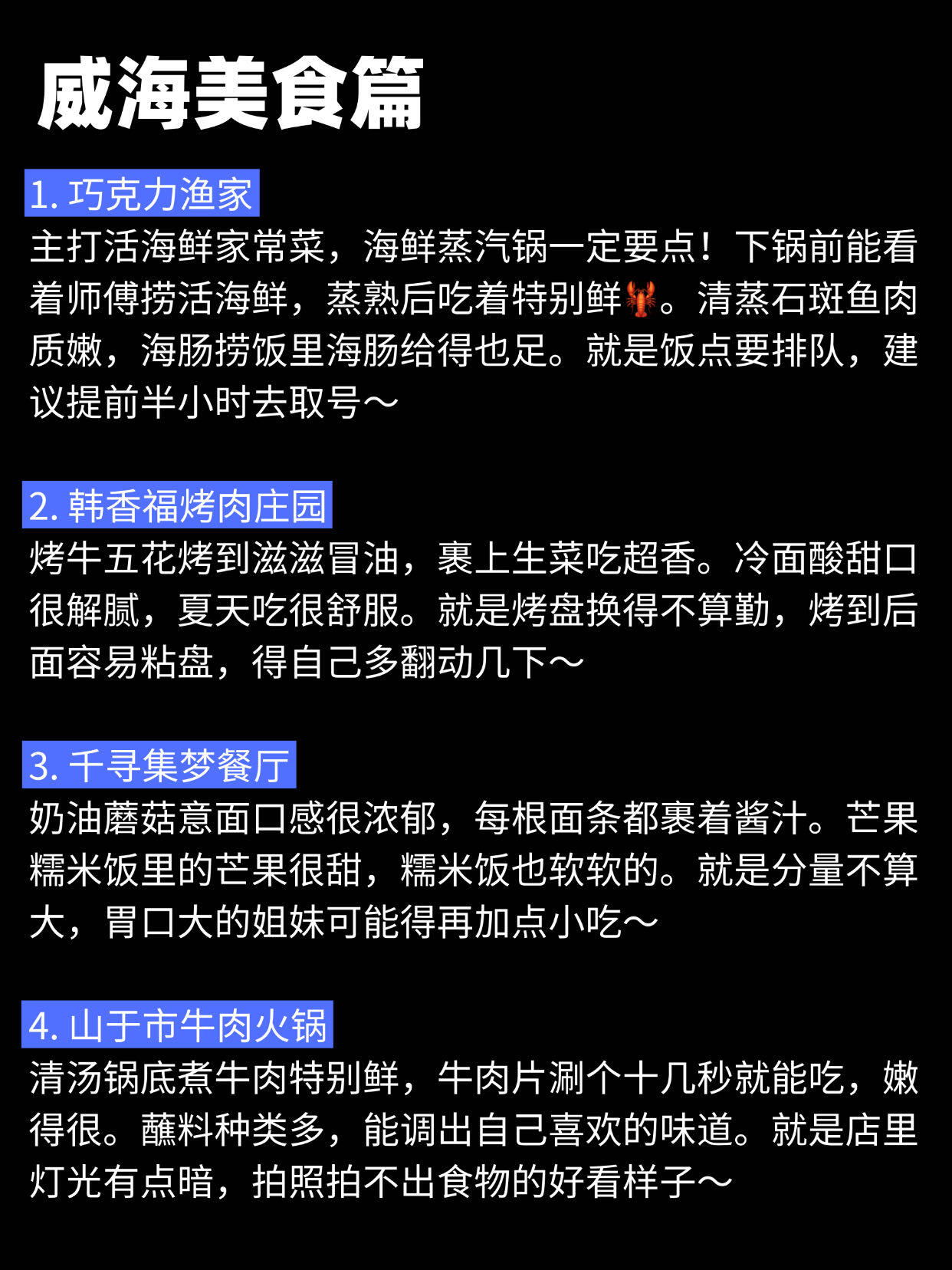 这次威海行没赶太多景点,每天慢悠悠逛吃,感觉特别放松。海边的风、新鲜的海鲜,都让人很舒服~
