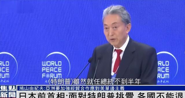 鸠山由纪夫在世界和平论坛上谈及了特朗普的关税政策。