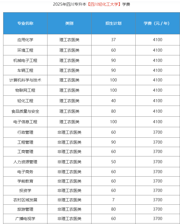 四川轻化工大学2025 年普通高校专升本招生共开设27个专业,总计划1137人。 学费在 3700-10000 元/年,其中艺体类的音乐表演专业学费最高。