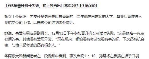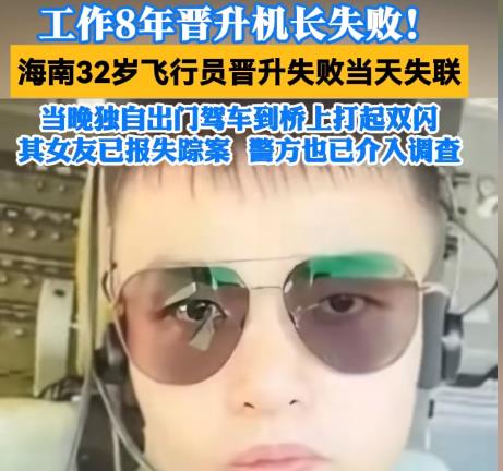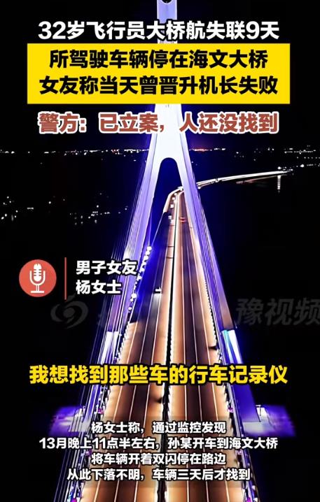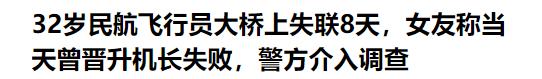 极目新闻——32岁民航飞行员大桥上失联8天,女友称当天曾晋升机长失败,警方介入调查