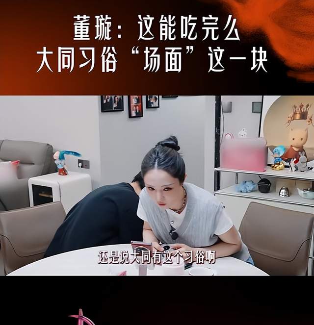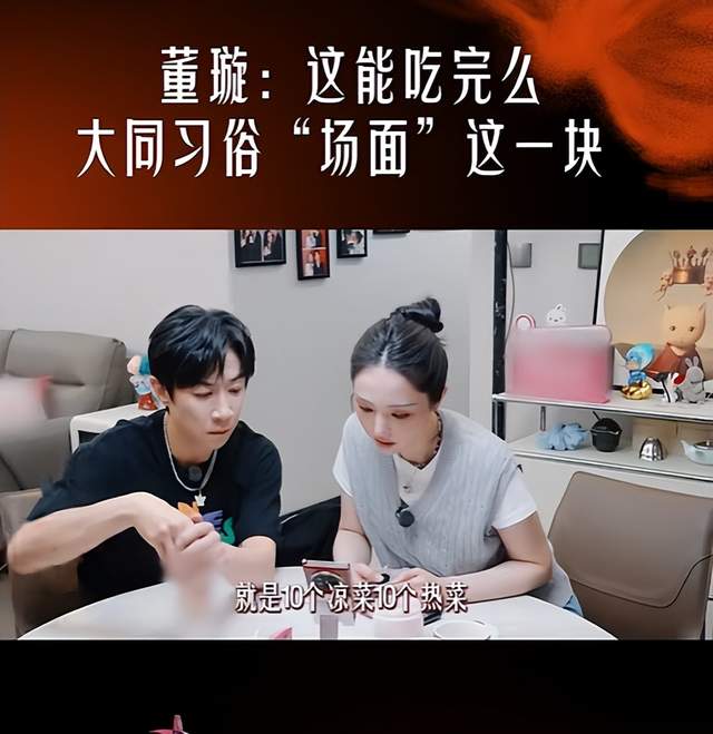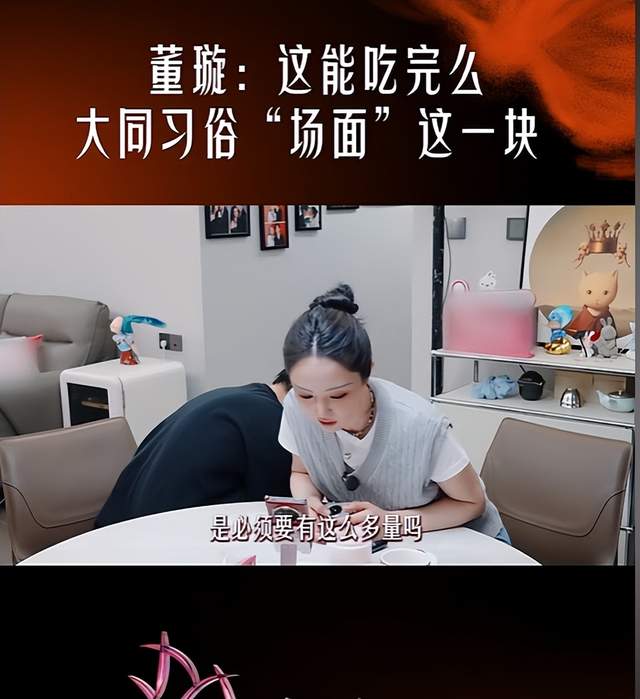节目中董璇和张维伊面对婚宴的宴席菜品准备产生了质疑,董璇随即用手机拨通婚宴负责人电话询问关于宴席菜量的安排是否合理,是不是大同当地的习俗是这样的。