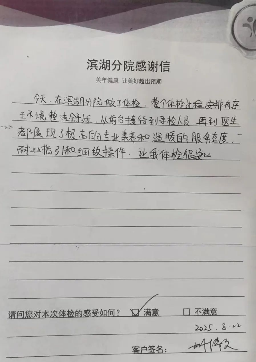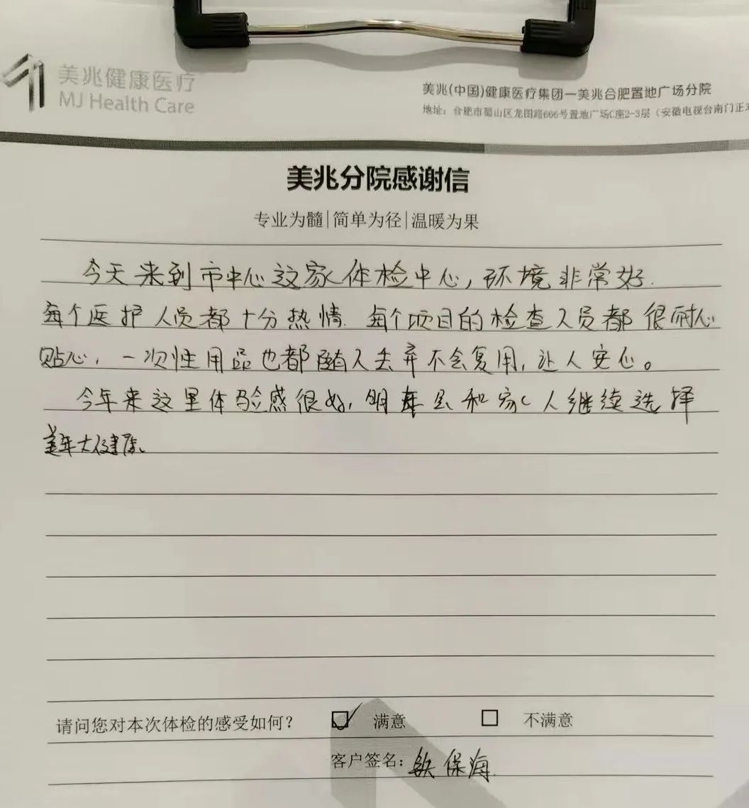 如果您正在寻找“合肥体检中心推荐”或考虑“企业团检”服务,那么今天这篇来自真实客户的反馈,将为您提供一个温暖而可靠的选择参考。就让我们通过这些真挚的话语,一起走进合肥美年大健康的服务现场,感受那些细微却闪光的瞬间。