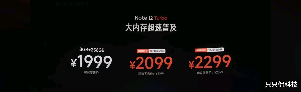 尤为值得一说的是,红米Note 12 Turbo的配置绝对是Note系列中顶格的配置,摒弃了128G内存,最低内存直接来到了8+256GB,最高内存则是1TB内存+16GB。价位上分别是1999元和2799元,不过,1TB内存版本的红米Note 12 Turbo首次发售中,是远低于这个价位的。