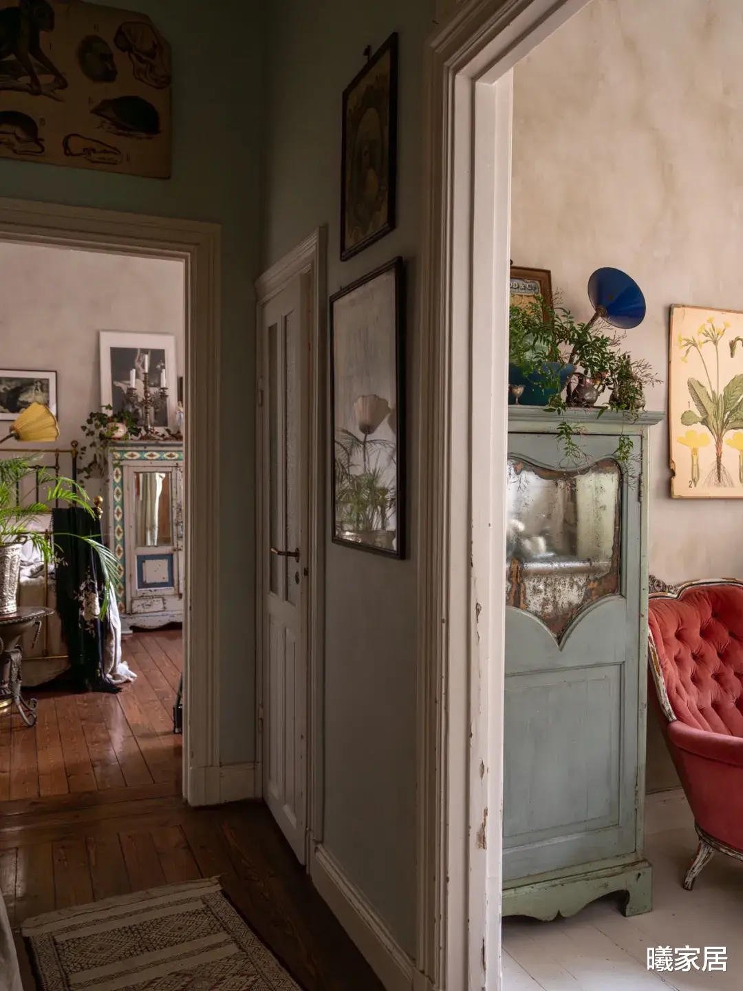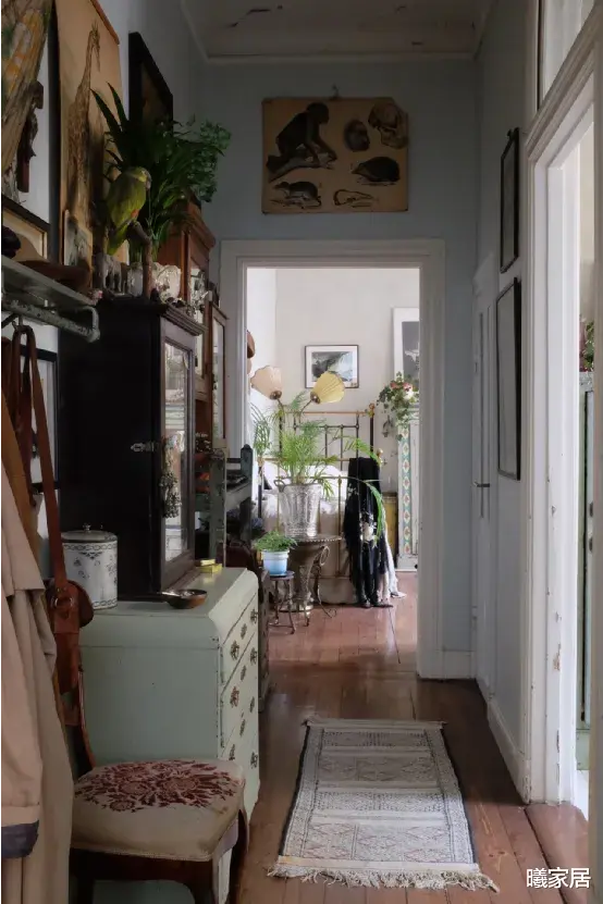 斑驳的走廊不是缺点而是优点。把走廊设计得漂亮,用喜欢的物件去装饰填满,就像是浪漫的巴黎公寓,随处都流淌着自由与精致的气息。