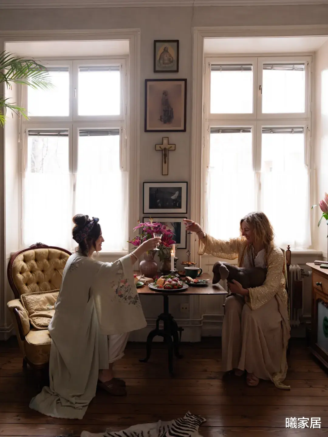 老旧的公寓里,每一件家具都散发着岁月的气息。墙上挂着的镜柜依然明亮清晰,老式的皮箱、木家具仿佛在诉说着过往的故事。住在这里是一位中年女子,她的生活也就像这个公寓一样,充满优雅与精致。偶尔邀请闺蜜相聚,坐在窗前享受美食,谈理想、谈现实、谈花、谈书,看似平常的生活却透露出一种从容不迫的生活态度。
