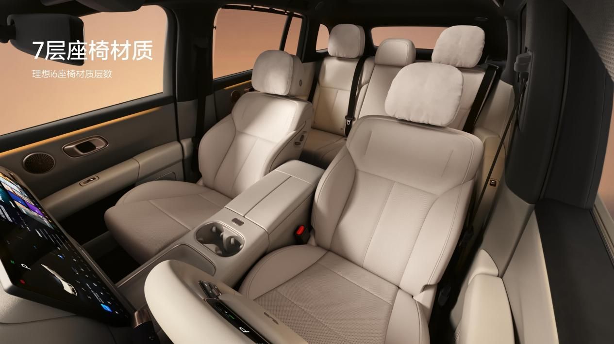 车内配置豪华,8.8升智能冷暖双用冰箱、21.4英寸3K后舱娱乐屏、铂金音响、侧窗隐私帘等一应俱全,提供多种空间模式。“单人床模式”下,1.83米身高也能轻松平躺,搭配座椅加热与按摩,享受SPA级体验;“i人空间”功能下,车内侧窗隐私帘打开,后舱娱乐屏可调取车外摄像头,打造私密安全空间。理想i6延续静谧基因,全车声学材料覆盖率高达95%,结合低风噪造型设计、双层夹胶隔音玻璃和自研RNC路噪主动消除技术,提供极致静谧空间。