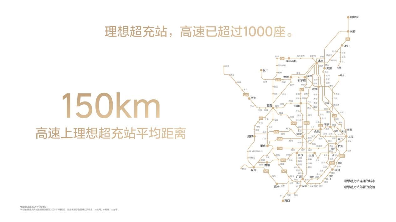 理想汽车自建超充网络,截至9月26日,上线超3300座超充站和超18000根超充桩。高速超充站超1000座,覆盖“九纵九横”核心路段,平均间隔150公里。城市超充站总数突破2200座,覆盖267个城市,一二线城市建成“10分钟充电生活圈”。基于车桩网协同能力和充电功率分配策略,提供便捷充电体验。