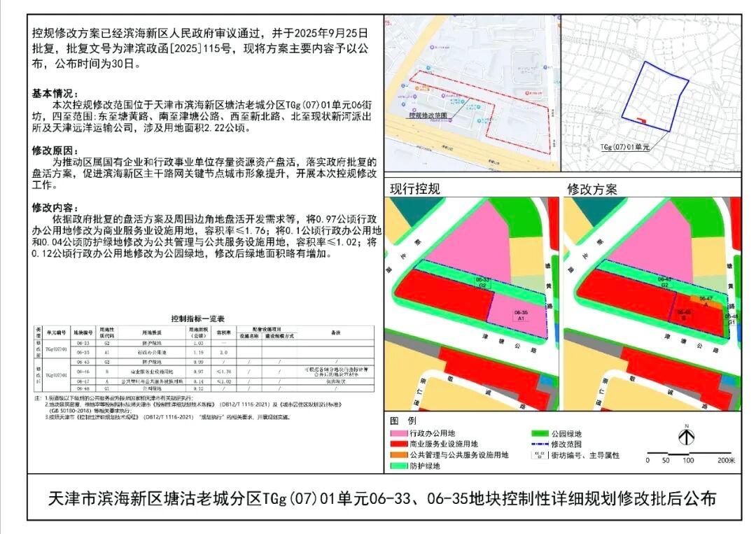 盘活国有资源,提升城市品质,天津滨海新区塘沽老城区的规划调整悄然传递着“让地于民”的温暖信号。近日,天津市规划和自然资源局网站公布了滨海新区塘沽老城分区部分地块控规修改的批后信息。该方案已于2025年9月25日经滨海新区人民政府审议通过并批复。
